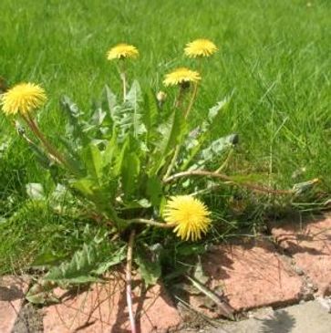 Dandelions are perennial weeds with bright yellow flowers that grow in rosettes. Dandelions reproduce by seed and by buds on taproots. Small root chunks left in soil during cultivation can form new plants. Commercial herbicidal products can be used to control dandelions.